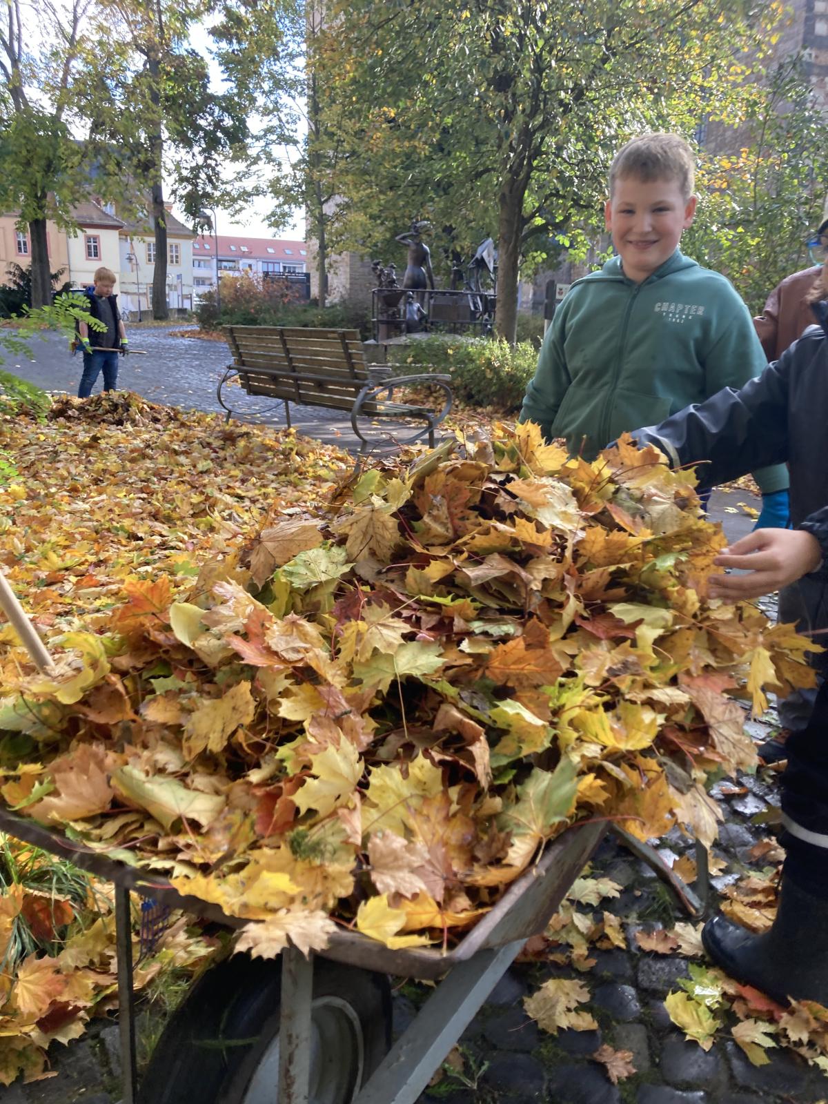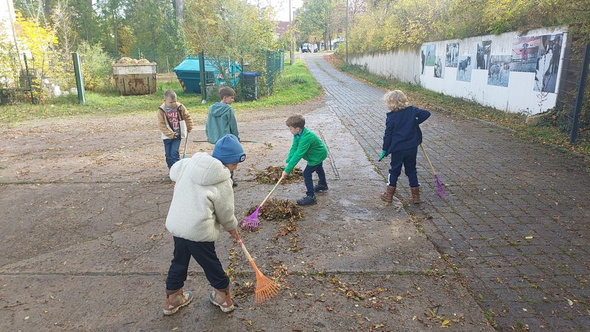 Einmal im Jahr finden unsere Helfertage statt. Dabei arbeiten wir mit verschiedenen Partnerinnen und Partnern in Sömmerda zusammen und engagieren uns für Mensch, Tier und Umwelt. In diesem Jahr haben wir im Kanu Club Sömmerda angepackt, gestrichen und Laub gerecht, bei der Maria Martha Schule haben wir Schülerinnen und Schülern im Schulalltag geholfen sowie ebenfalls Laub beseitigt, im Stadtpark sowie im an die Schule grenzenden Viertel "Neue Zeit" wurde Müll gesammelt, mit dem NABU die Nistkästen im Umfeld unserer Schule kontrolliert, im Tierheim des Tierschutzvereins Sömmerda e.V. wurde kräftig unterstützt, sowie im Kindergarten Mischka und bei der Regionalgemeinde Sömmerda ebenso Laub gerecht. Zudem haben unsere Kinder Karten mit Genesungswünsche für Patientinnen und Patienten im Krankenhaus gestaltet. Dies begeistert Groß und Klein und zeigt, wie einfach Engagement für die Schöpfung ist.